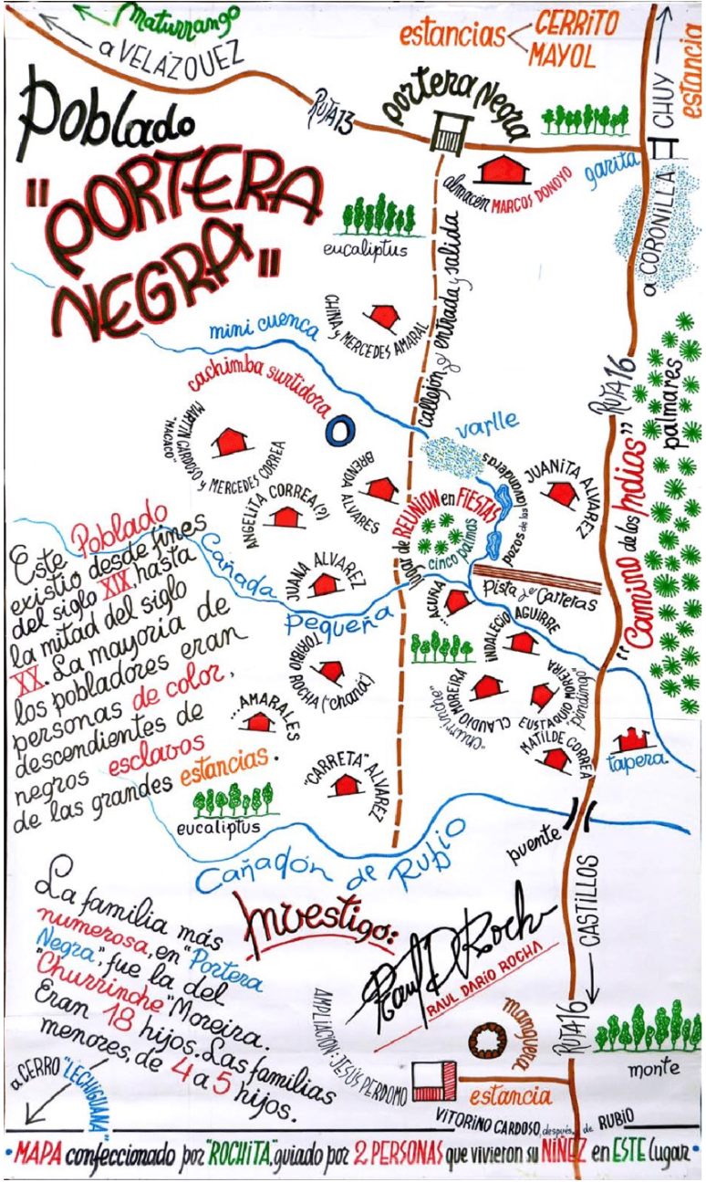 Los casos de estudio son los caseríos afrorrurales del periodo de pos abolición de la esclavitud. El primero se ubica en Rincón de los Negros, en la confluencia del arroyo Chafalote con la Cañada de los Negros, a tres kilómetros al sur de la localidad 19 de Abril (ubicada sobre la Ruta 9 con destino a Brasil), y el segundo en Portera Negra, ubicada en el entorno de la cuenca de la Laguna Negra, en la zona centro-sur del departamento de Rocha.