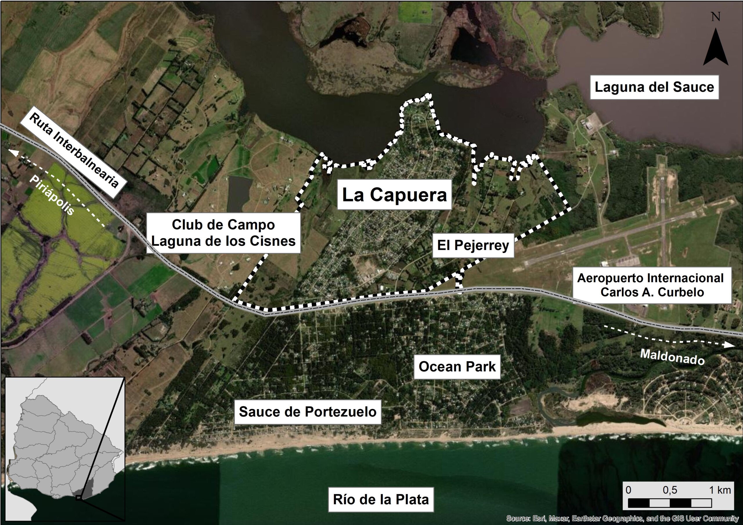La Capuera es un fraccionamiento que incluye aproximadamente 1300 terrenos en 215 hectáreas entre la Ruta Interbalnearia (km 108) y la Laguna del Sauce, principal ecosistema abastecedor del agua potabilizable del departamento. A partir de viejas situaciones conflictivas en la tenencia de la tierra, el sitio acoge históricamente familias migrantes nacionales motivadas por la búsqueda de oportunidades laborales. Es así que se ha consolidado como centro urbano permanente de clase media – baja, pasando de una población que en 2004 era cercana a las 500 personas, a aproximadamente 4600 habitantes en 2023.